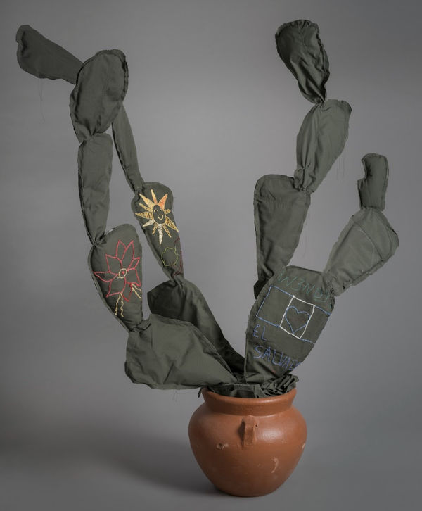 Margarita Cabrera’s practice renders contentious topics into a compelling exploration of identity, migration, and societal critique. Often through playful representations—such as landscapes of embroidered cacti or exchanges with mimicking parrots—her work combines traditional craftsmanship with cultural commentary. She utilizes materials that carry considerable significance, such as border patrol uniforms and cochineal dye, transforming them into powerful vehicles for discourse. Cabrera approaches her work collaboratively, incorporating narratives from Indigenous and immigrant communities, weaving their stories into the fabric of her soft sculptures. Through this multi-layered process, her practice reflects the complex global identities of border regions and reclaims them as potent symbols of resilience.